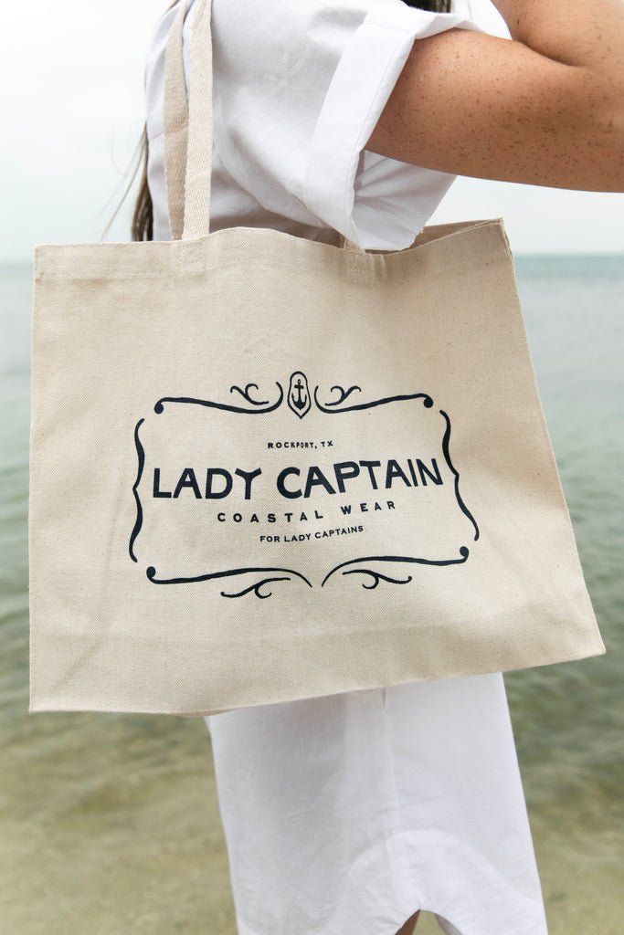 From the grocery store to the gym and of course the beach, our Lady Captain canvas tote can carry it all! Fits a standard sized lap top or a couple beach towels.