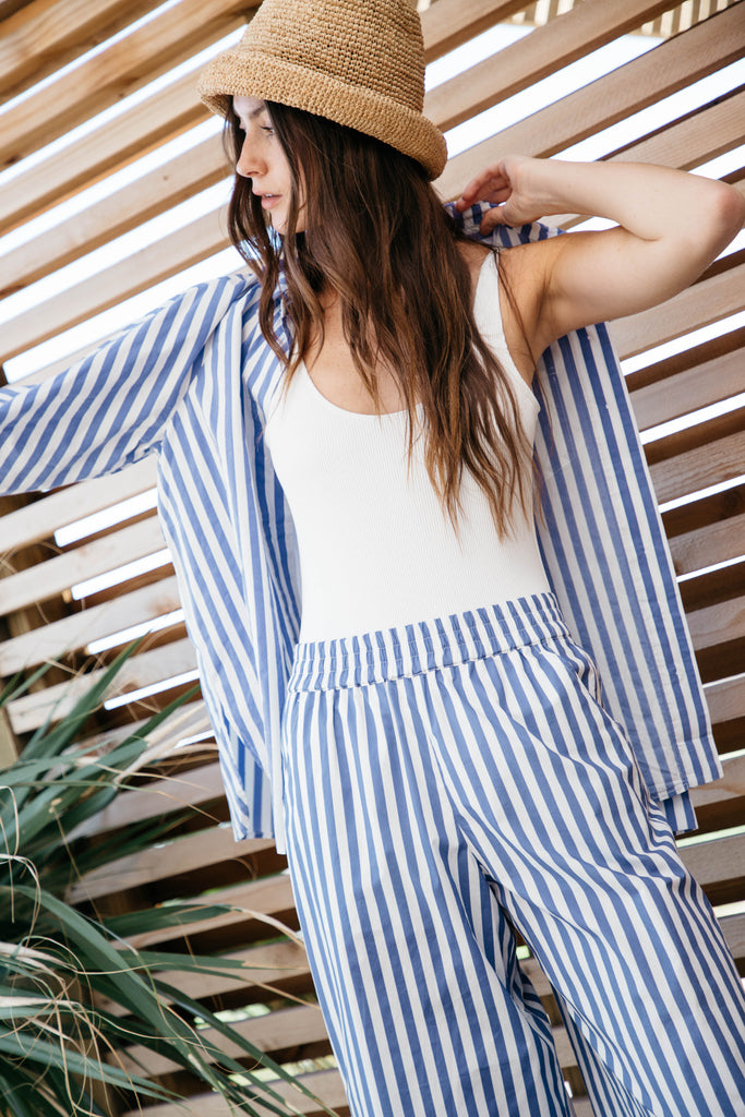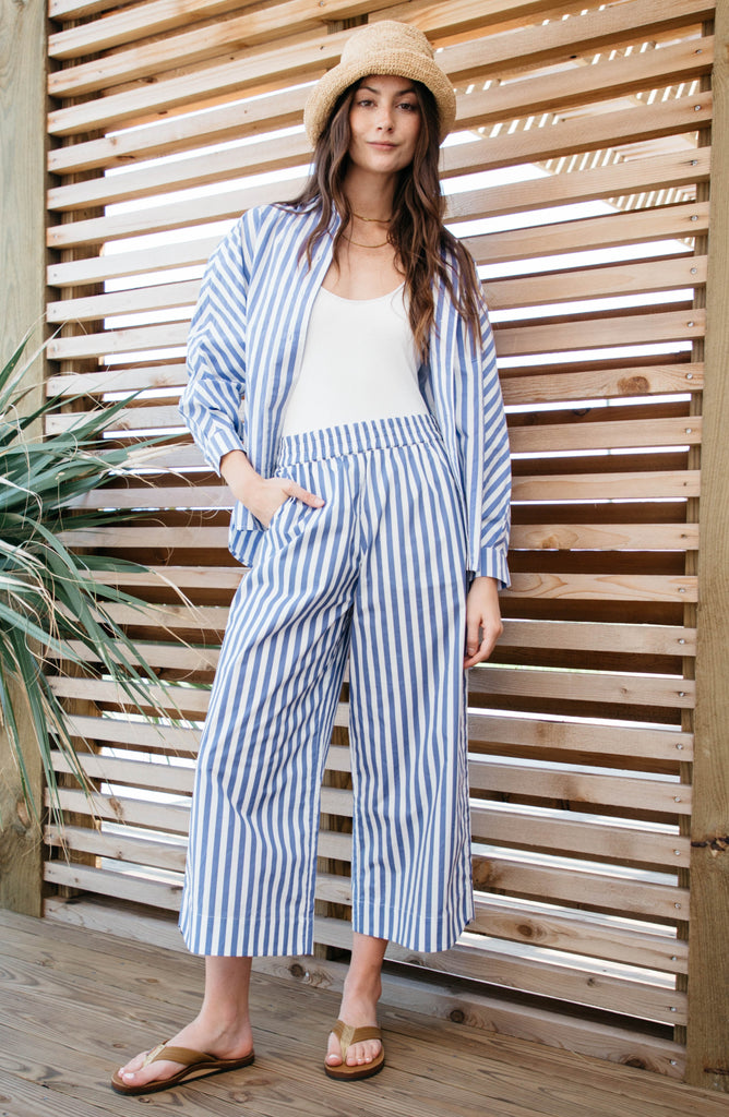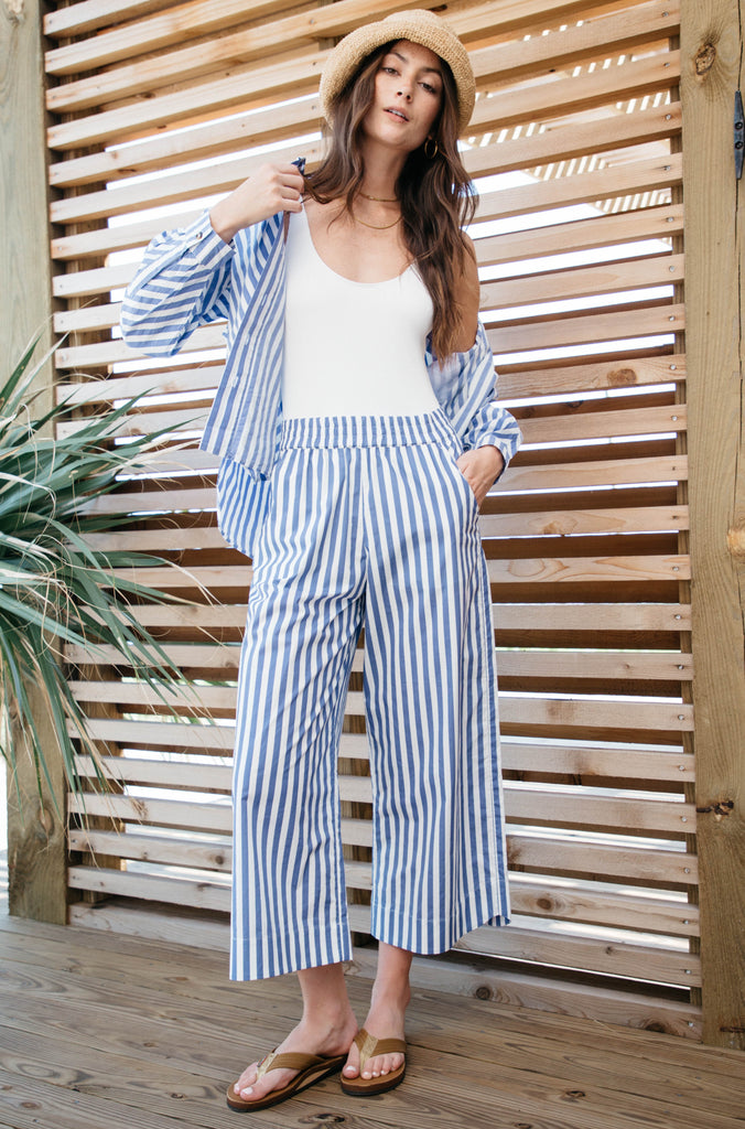Say hello to your new go-to pull on pants. Features an elastic waist making it easy to slip on over your swimsuit or pair with your favorite tee or matching LC blue striped fishing shirt, these wide leg pants are a total dream. Fits true to size with the softest cotton poplin fabric and our signature curved hem at the bottom, these are soon to be a closet staple year round.