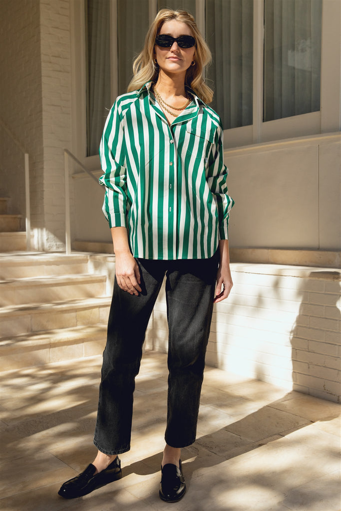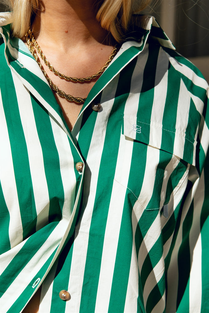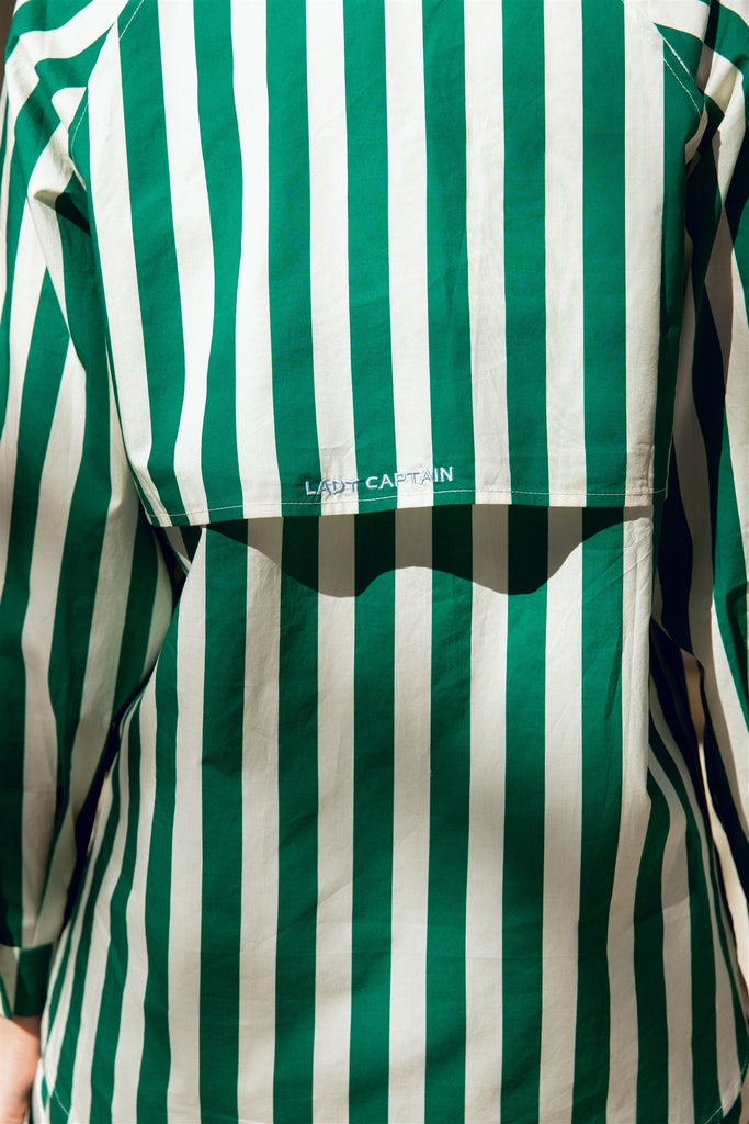 The Captain Shirt in Green Cabana Stripe