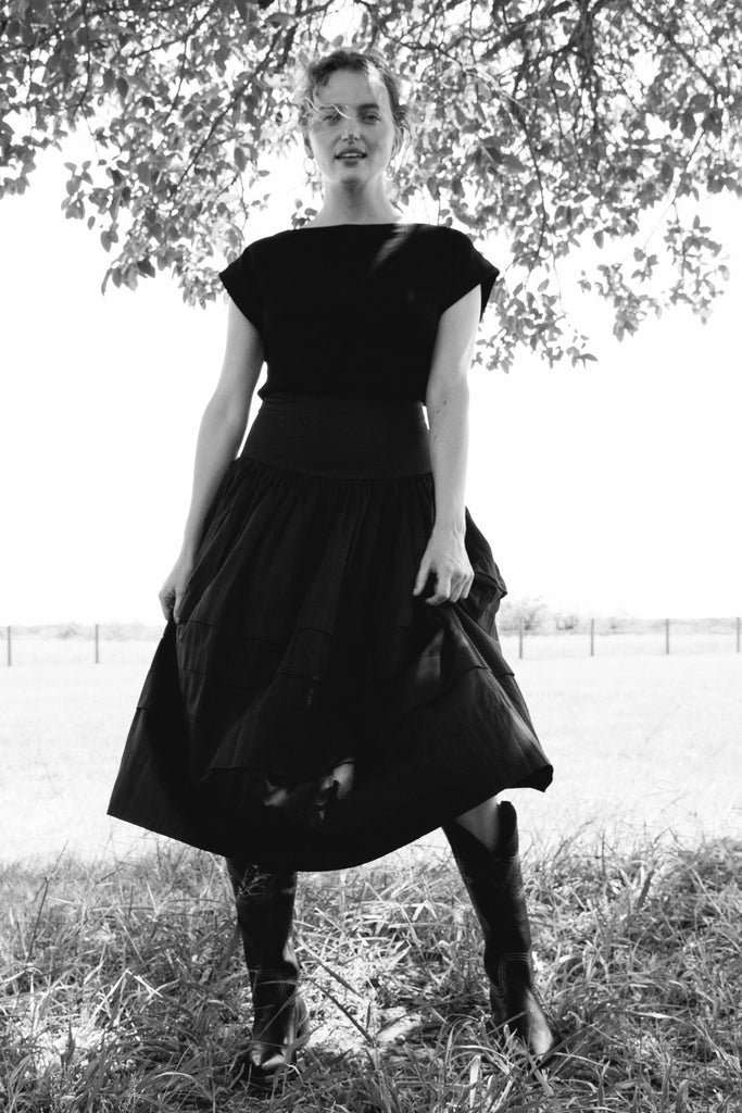 Introducing your new favorite skirt for fall, the Louise Midi Skirt. The perfect piece for dinner parties with friends or to dress up a simple tee. Made out of high-quality cotton poplin and featuring elevated pleated details, the Louise skirt is the perfect touch of elegance for your fall wardrobe. Pair with our Knit Boat Neck Top in Black to complete the look.