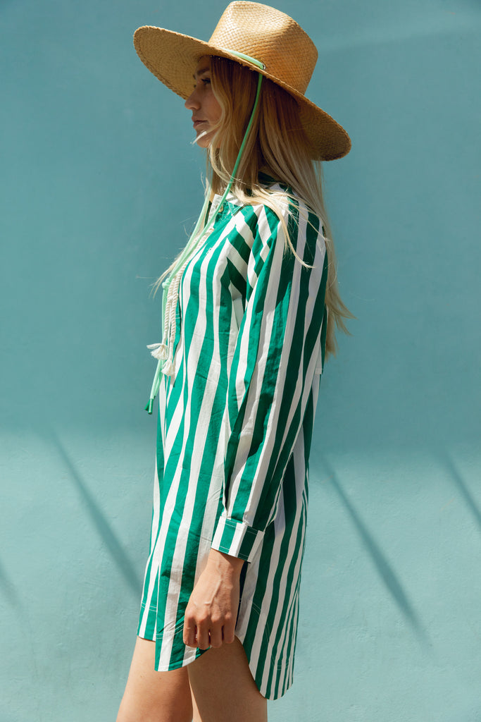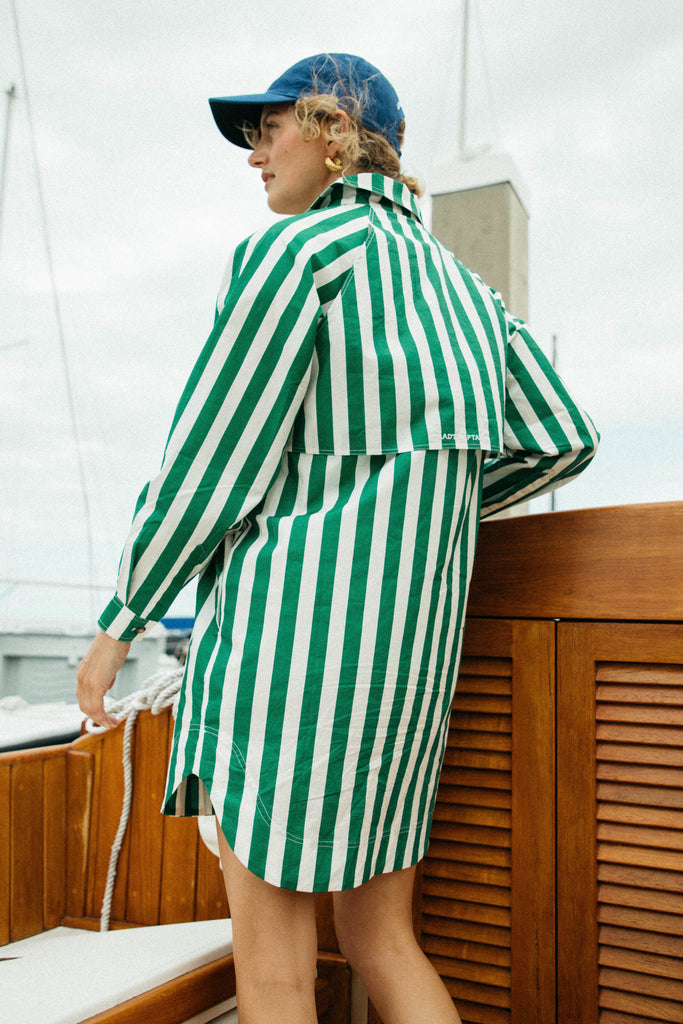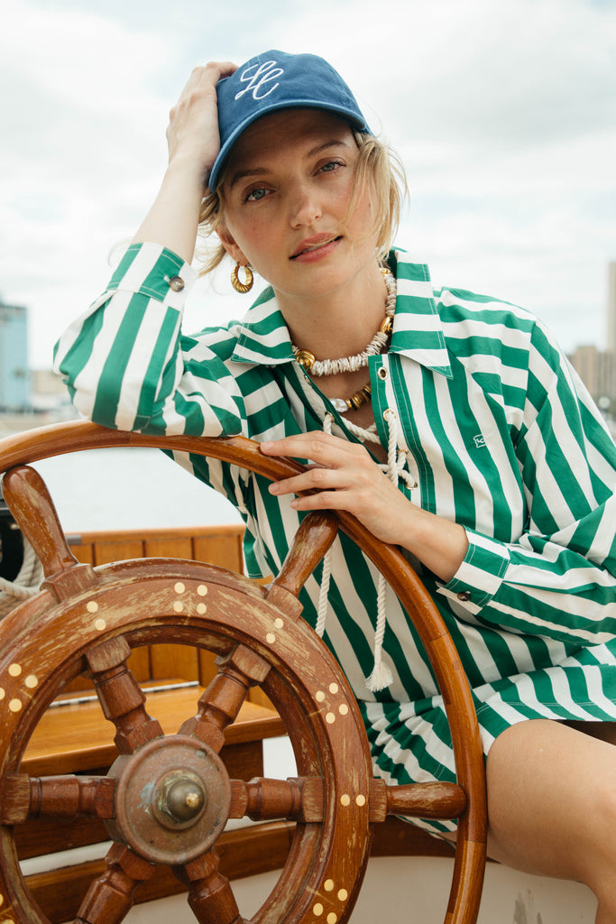 A dress version of our newest go-to. Featuring our staple raglan sleeve for a more feminine fit, we've extended the hem and added a lace up pop-over detail so this style can be worn as a dress on or off the water. Pair with sandals around town or with sneakers for a classic coastal look! Also features a vented back and water resistant fabric with Lady Captain embroidered on the back.