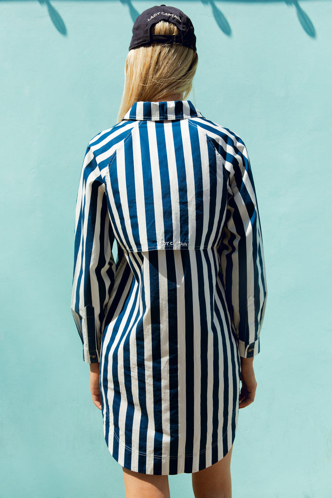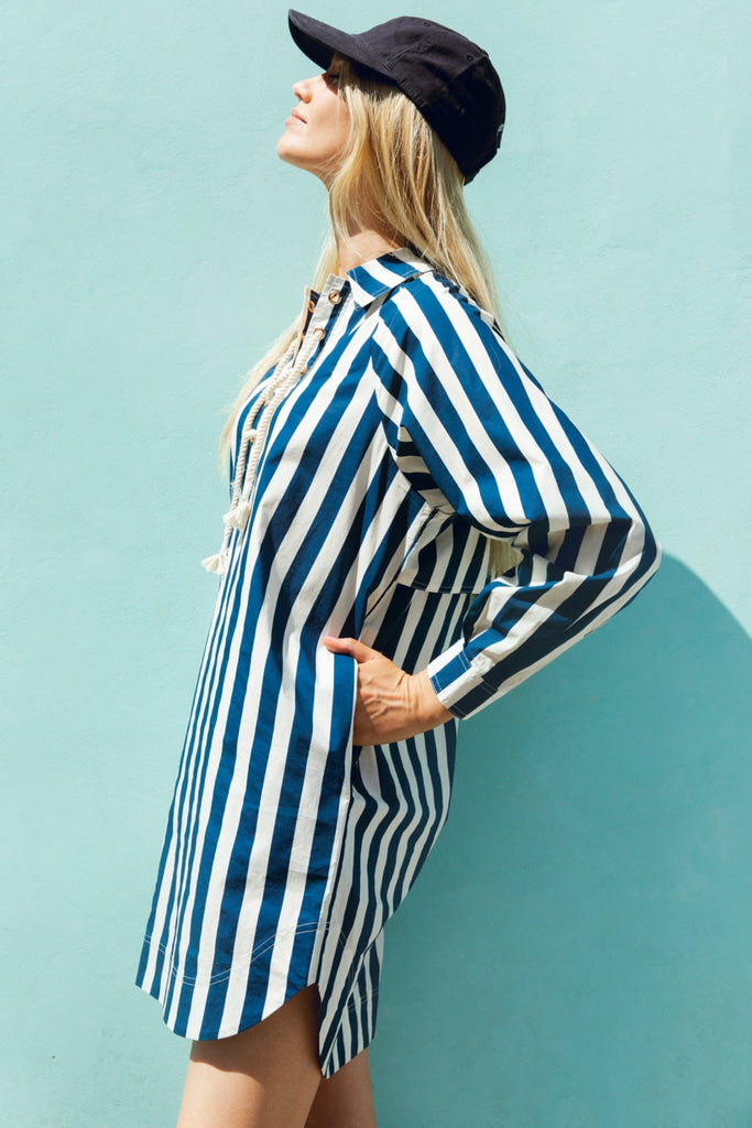 Skipper Mini Dress in Navy Cabana Stripe