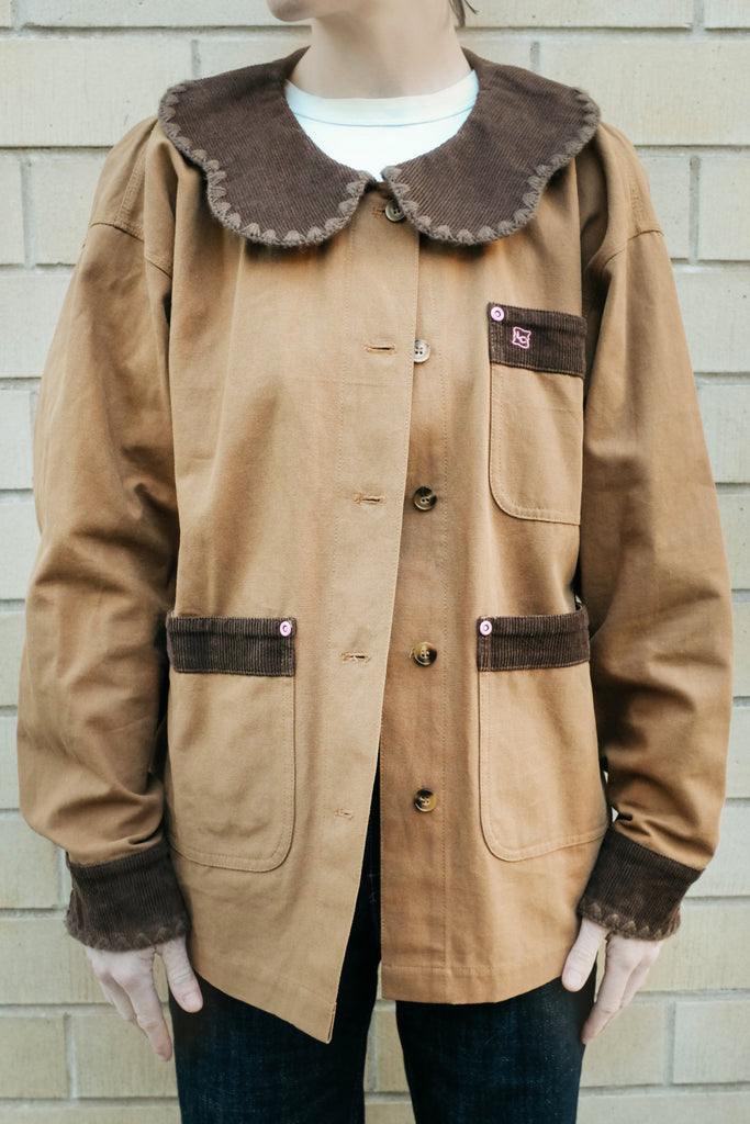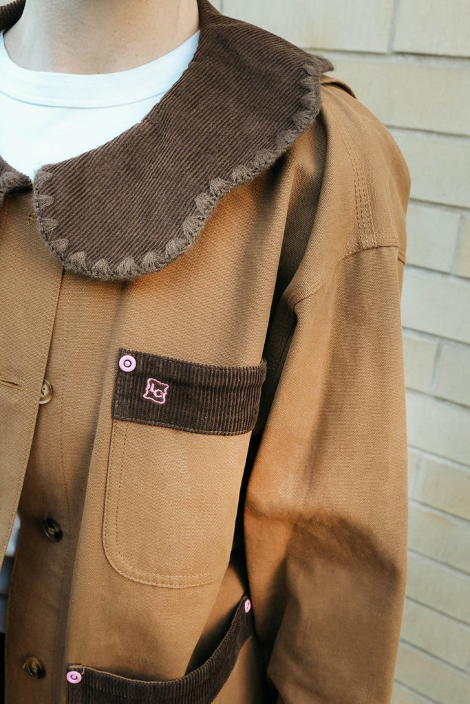 Our debut into outerwear, we are excited to launch the Cecile Brush Jacket. Named for our best friend, Cecile, a South Texas ranch child, this is the perfect layering jacket to add to your everyday repertoire. Pair over your LC ranch shirt or your go-to crewneck sweater, this jacket features a canvas body plus corduroy collar and sleeve elements with an embroidered yarn trim. We added pink accents on the hardware and embroidery because, well we're Lady Captains!