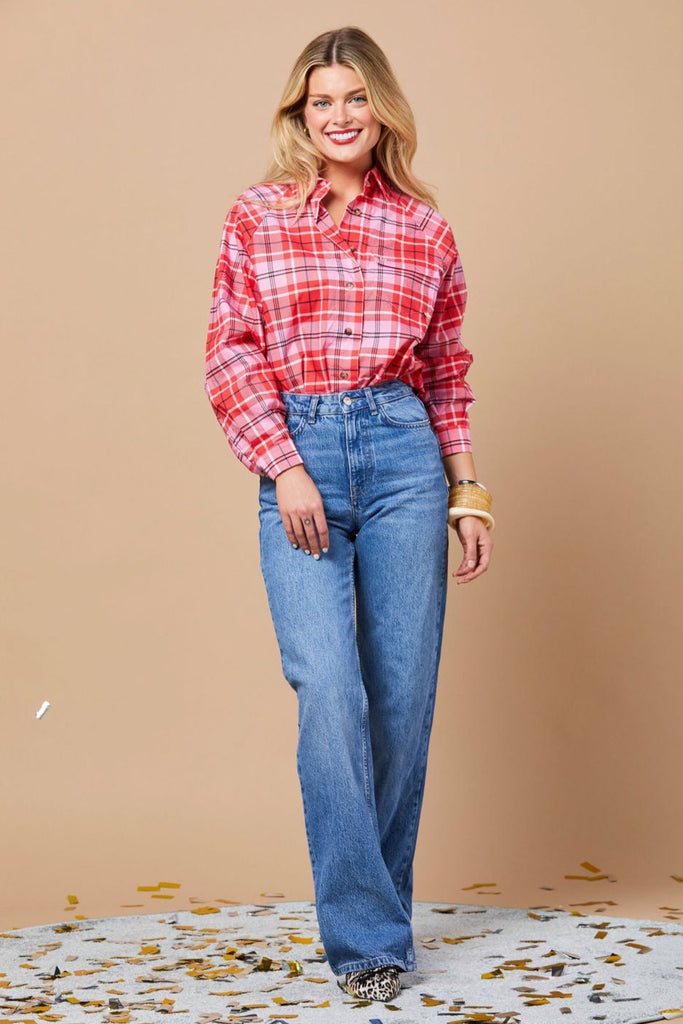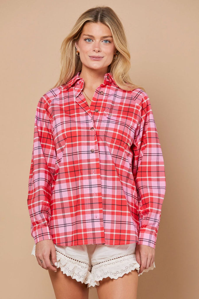 Aunt Beth's Ranch Shirt in Pink Plaid
