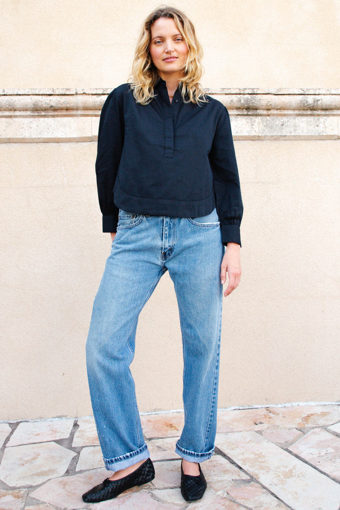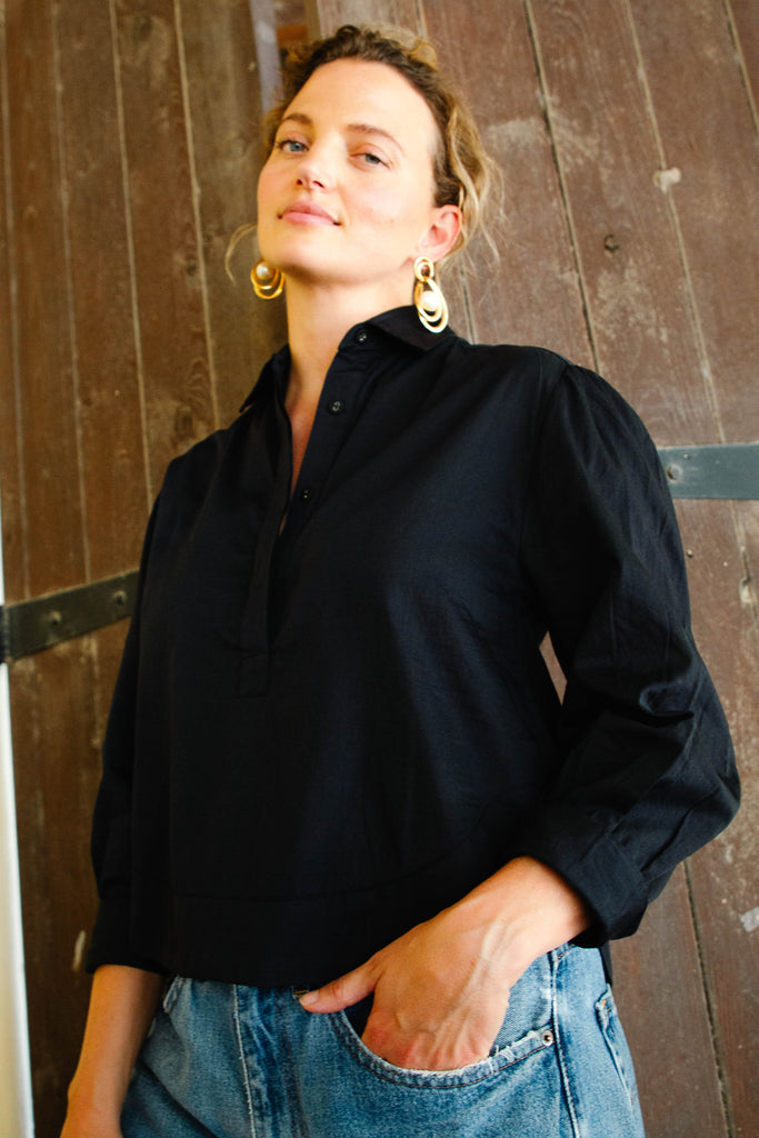 Introducing the Amanda top - the perfect sporty chic top for fall. Featuring a button front popover closure, long sleeves and our signature curved hemline. Pairs effortlessly with your favorite denim for your new go to uniform.