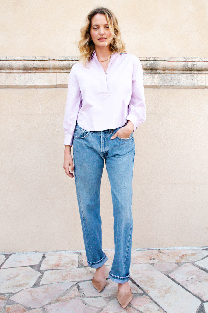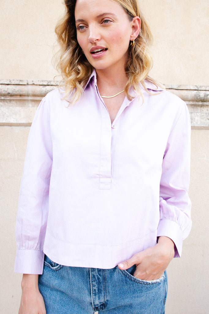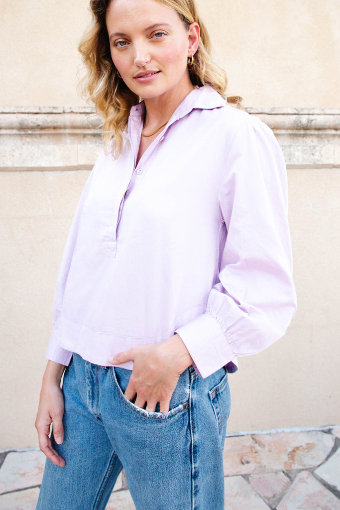 Introducing the Amanda top - the perfect sporty chic top for fall. Featuring a button front popover closure, long sleeves and our signature curved hemline. Pairs effortlessly with your favorite denim for your new go to uniform.