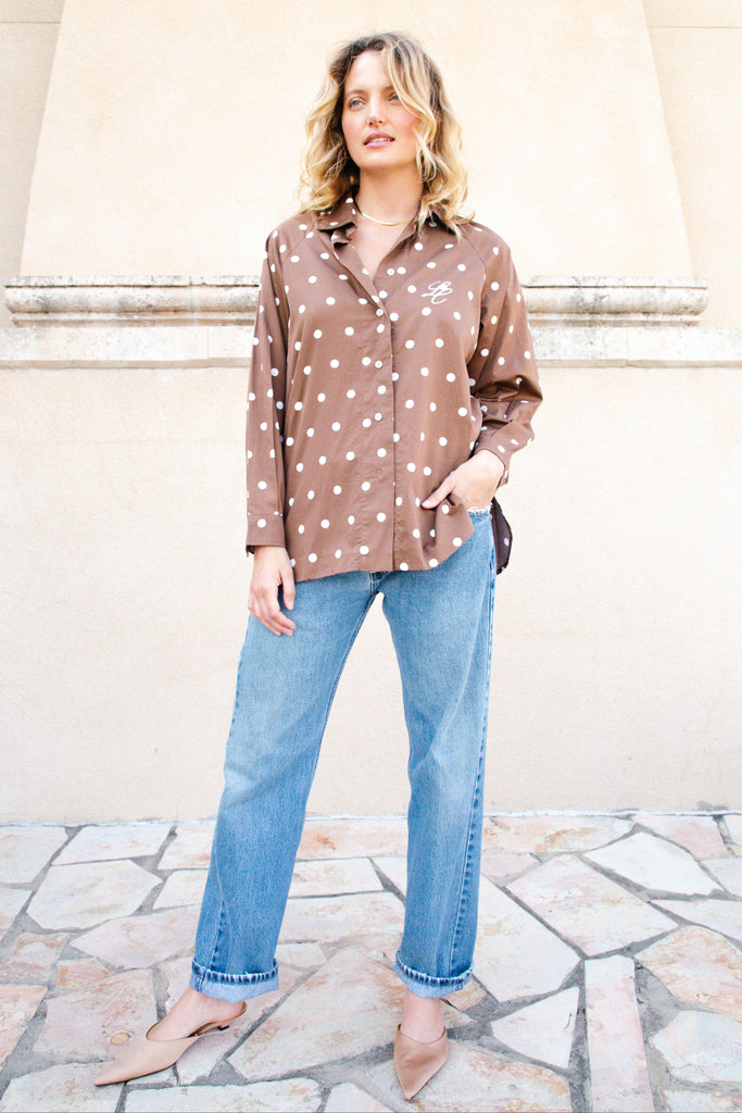 The Lady Button Down in Chocolate Polka Dot