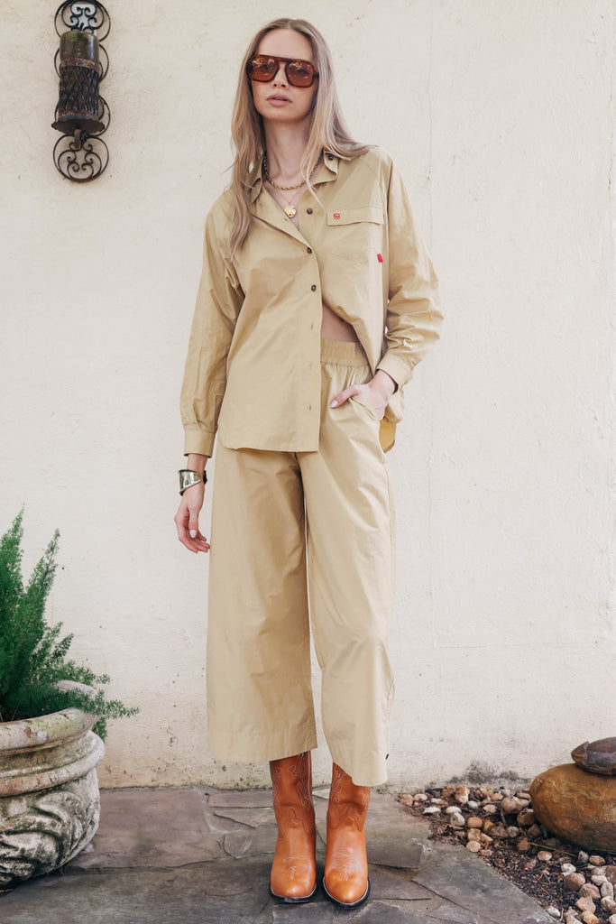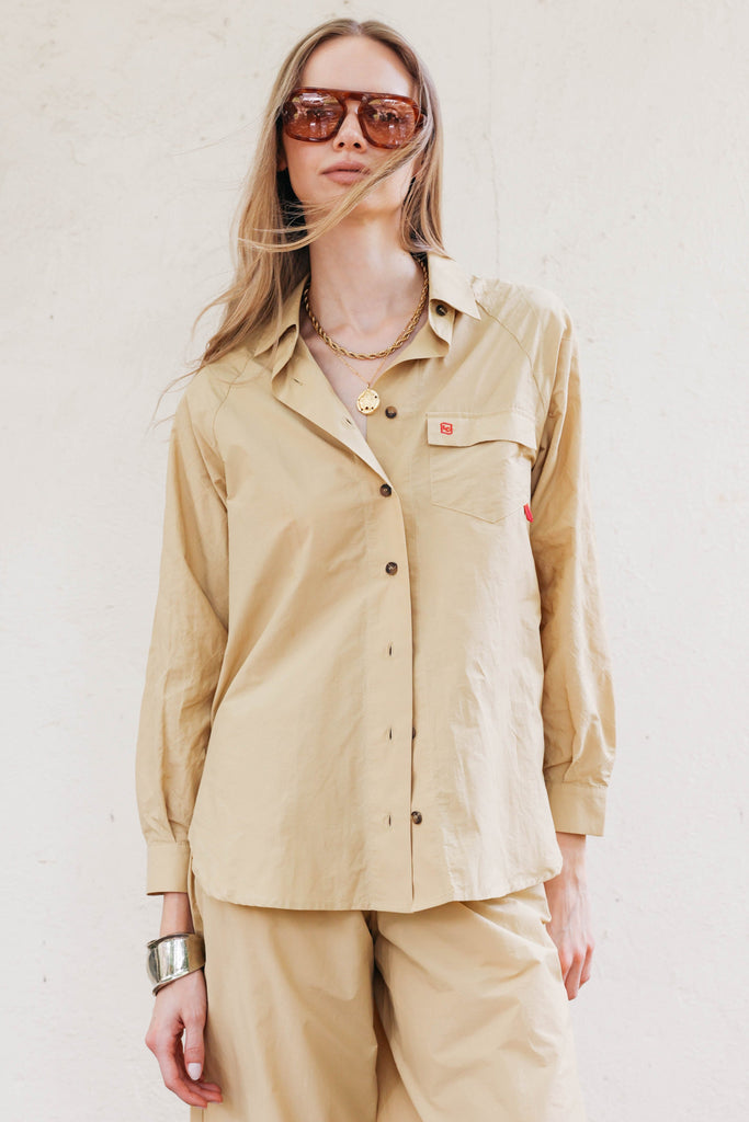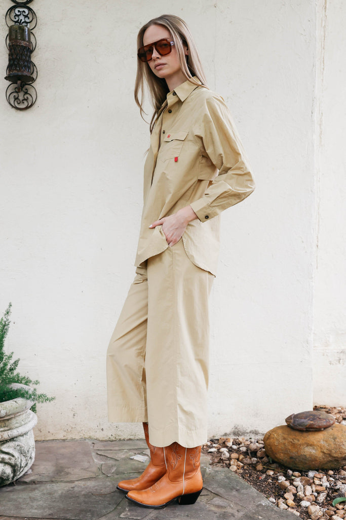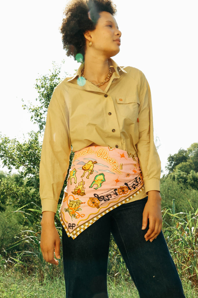 From our signature utility collection, this is not your husband's ranch shirt. Our best selling favorite, now available for Fall festivities! Named after Lauren's Aunt Beth aka "Tia," the chicest rancher in all of South Texas, we bring you the shirt for just that look.