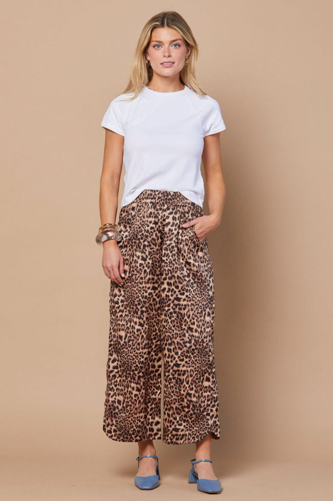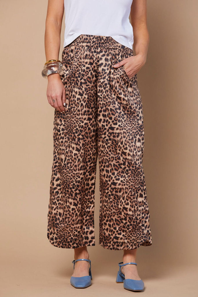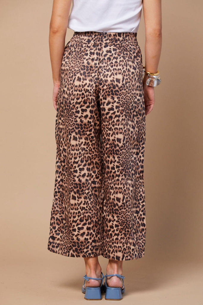 Say hello to your new go-to pull on pants, now in a festive leopard print. Features an elastic waist making it easy to slip on with your favorite tank or the matching Fishing Shirt in Leopard, these wide leg pants are a total dream. Fits true to size with the softest cotton poplin fabric and our signature curved hem at the bottom, these are soon to be a closet staple year round.